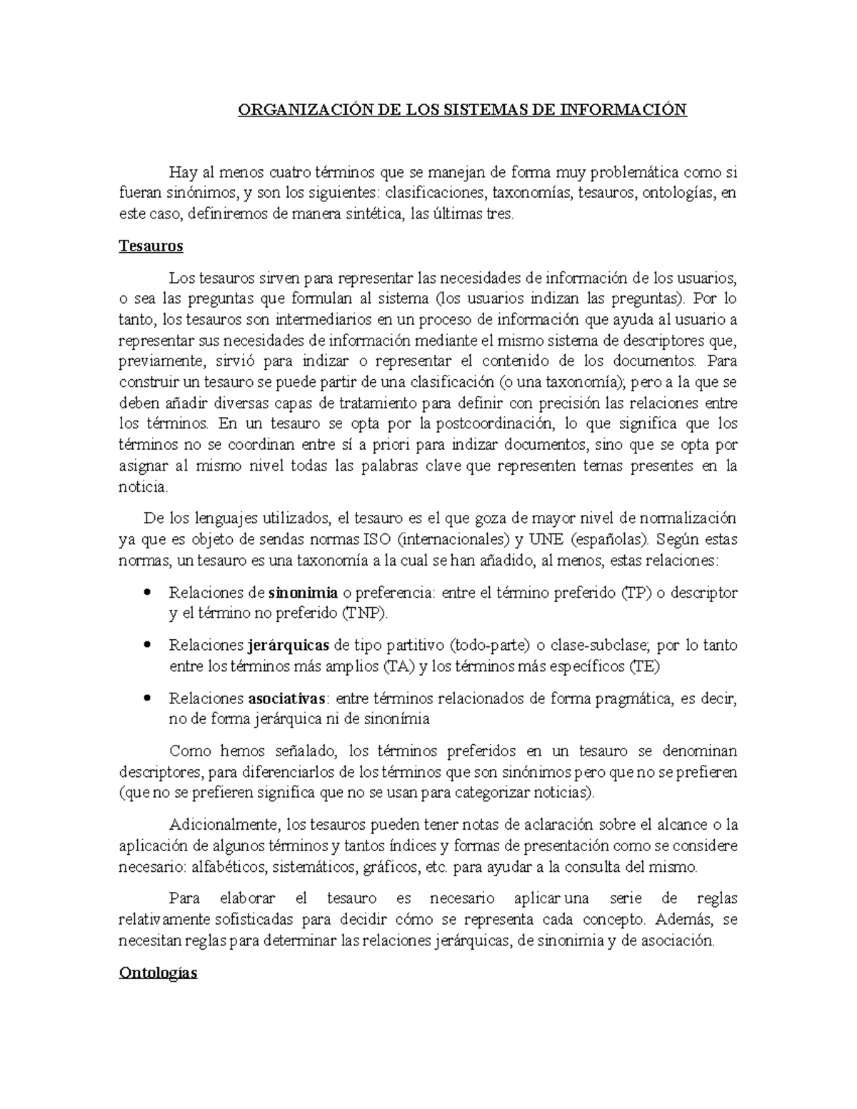 Organizacion DE LOS SIST. DE Informac - ORGANIZACIÓN DE LOS SISTEMAS DE ...