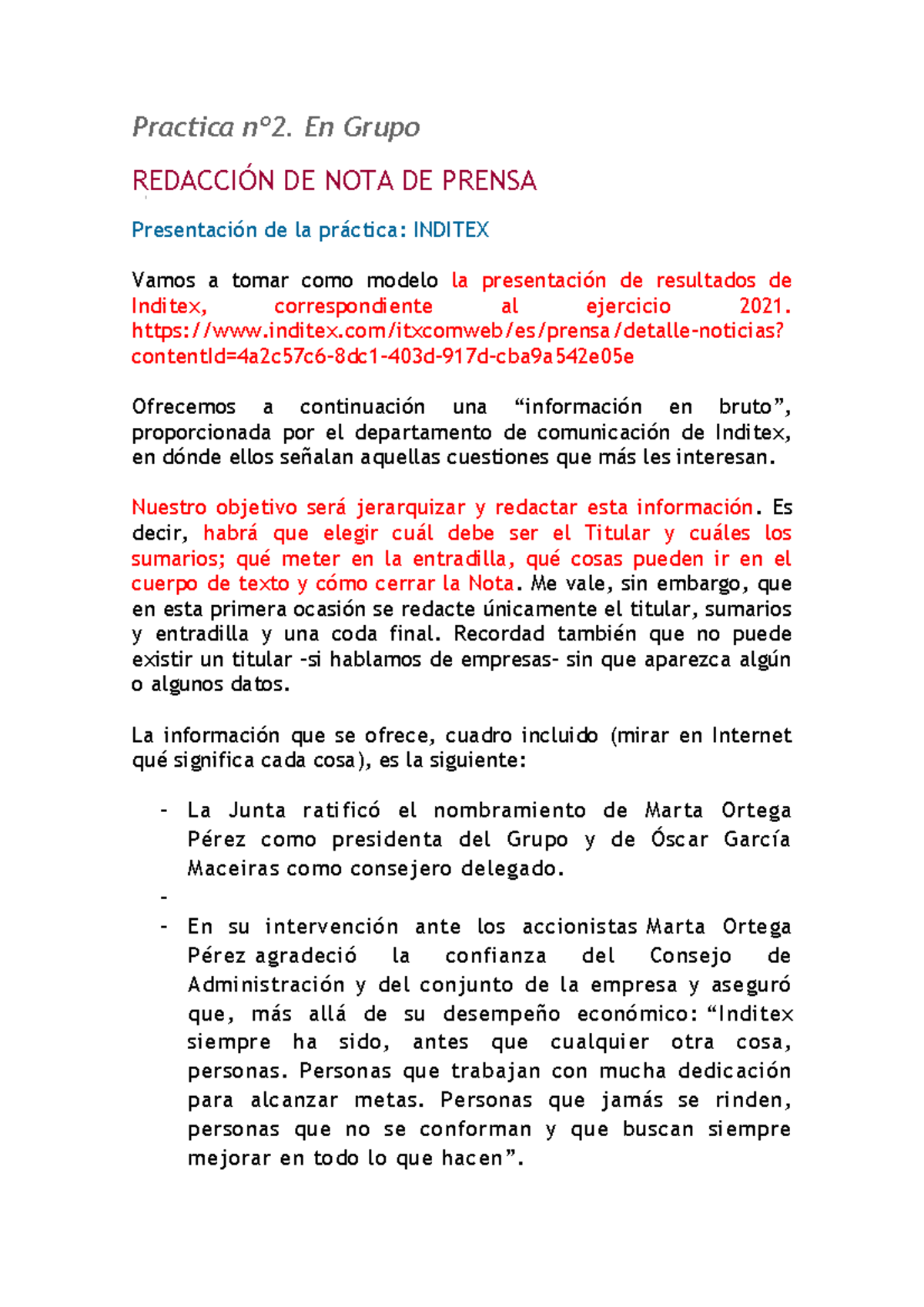 Informac. Institucional, Práctica, Nº 2, notas de prensa - Practica nº2 ...