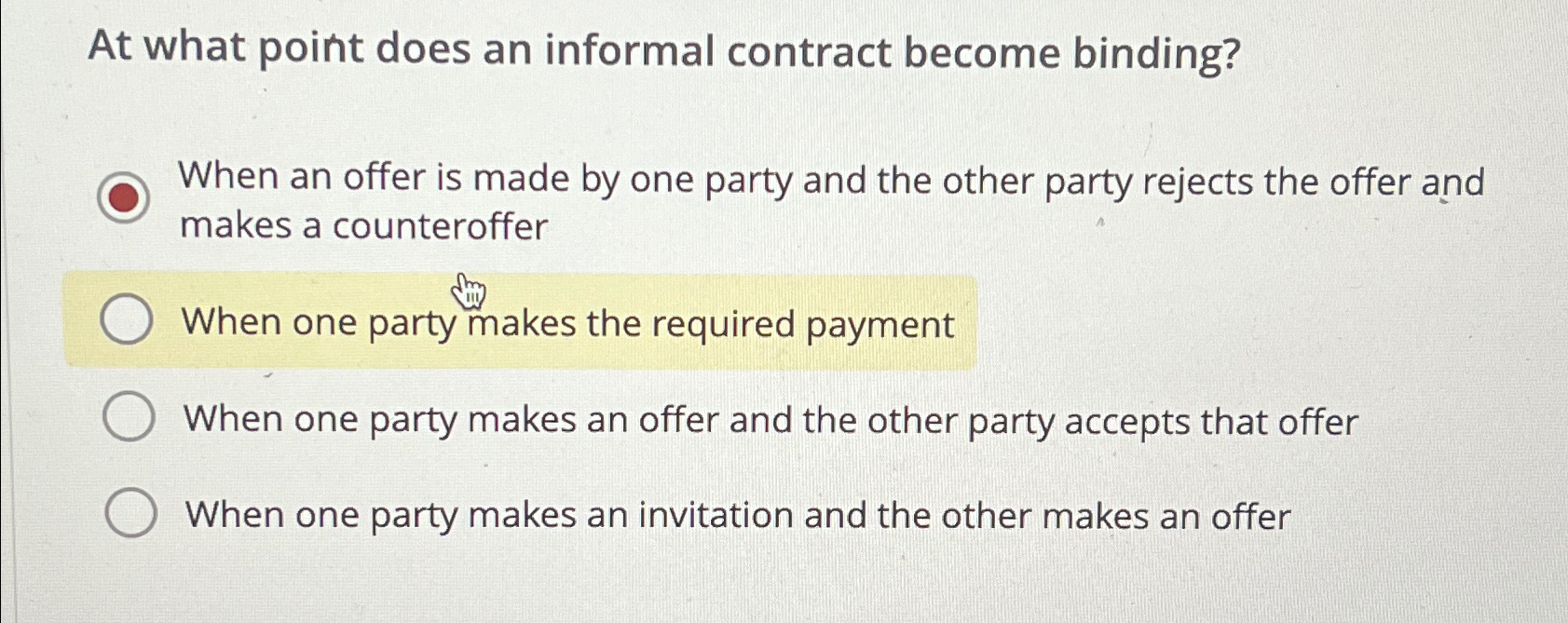 Solved Contracts can be formal, informal, in writing or | Chegg.com