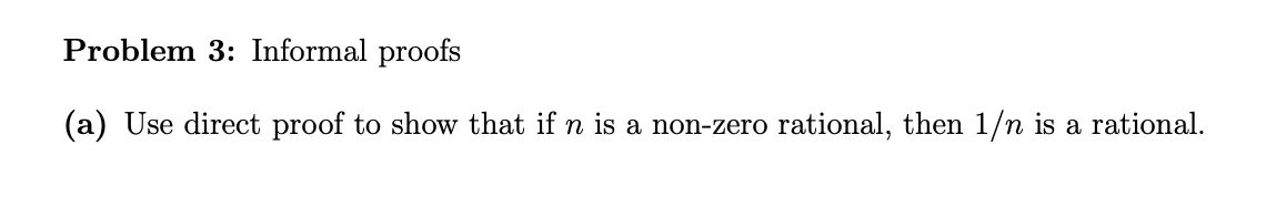 Solved Problem 3: Informal proofs (a) Use direct proof to | Chegg.com