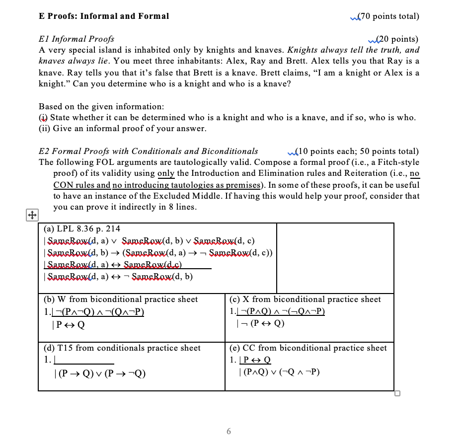 E Proofs: Informal and Formal (70 points total) El | Chegg.com