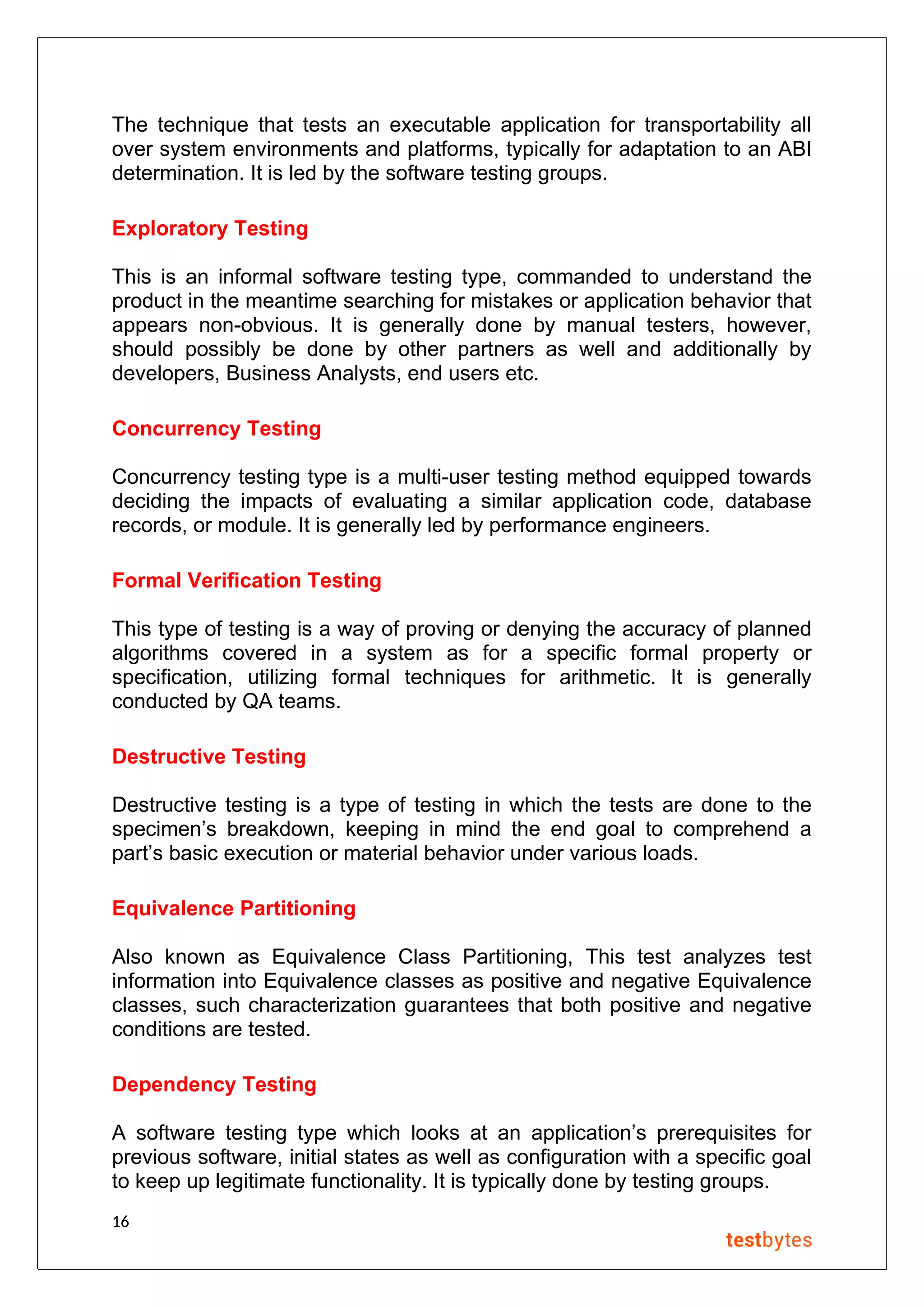 Types of software testing | PDF