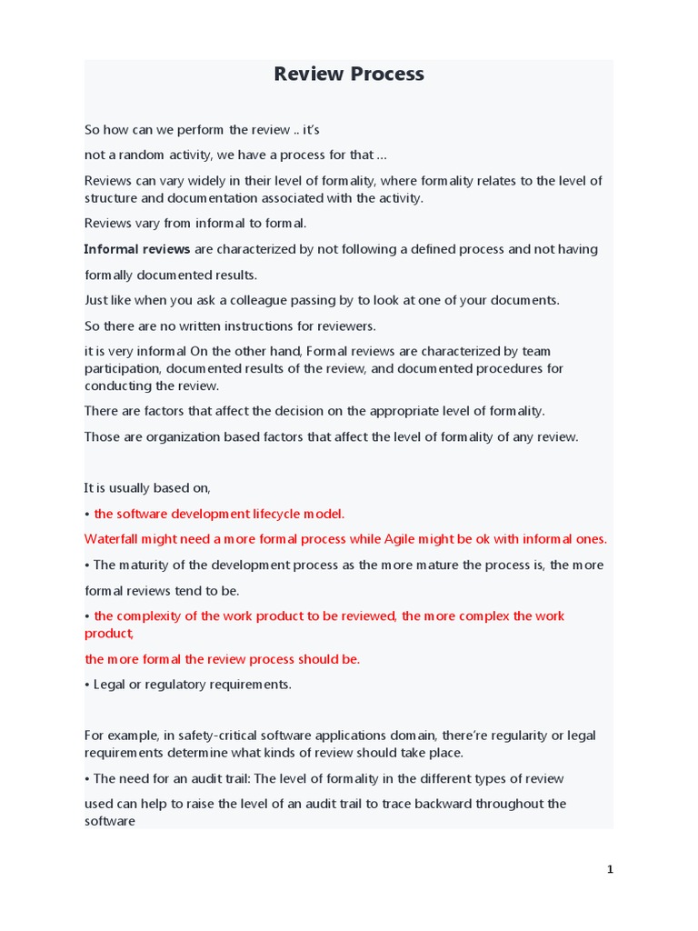 Informal Review Process In Software Testing