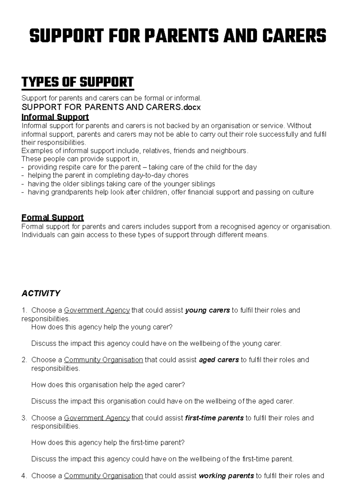 Formal vs. Informal Support for Families of Individuals with | Course Hero