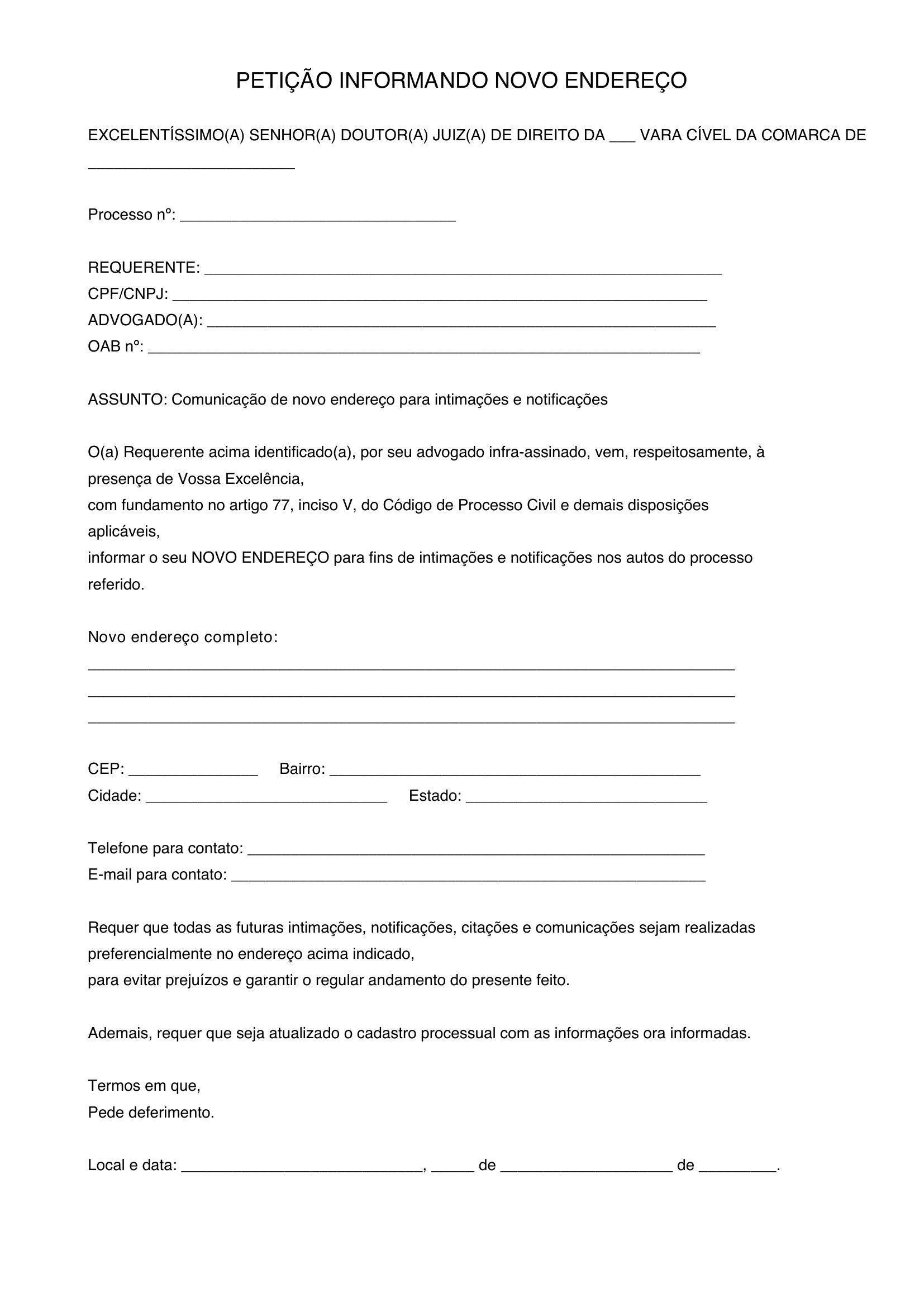 Modelo De Petição Informando Novo Endereço