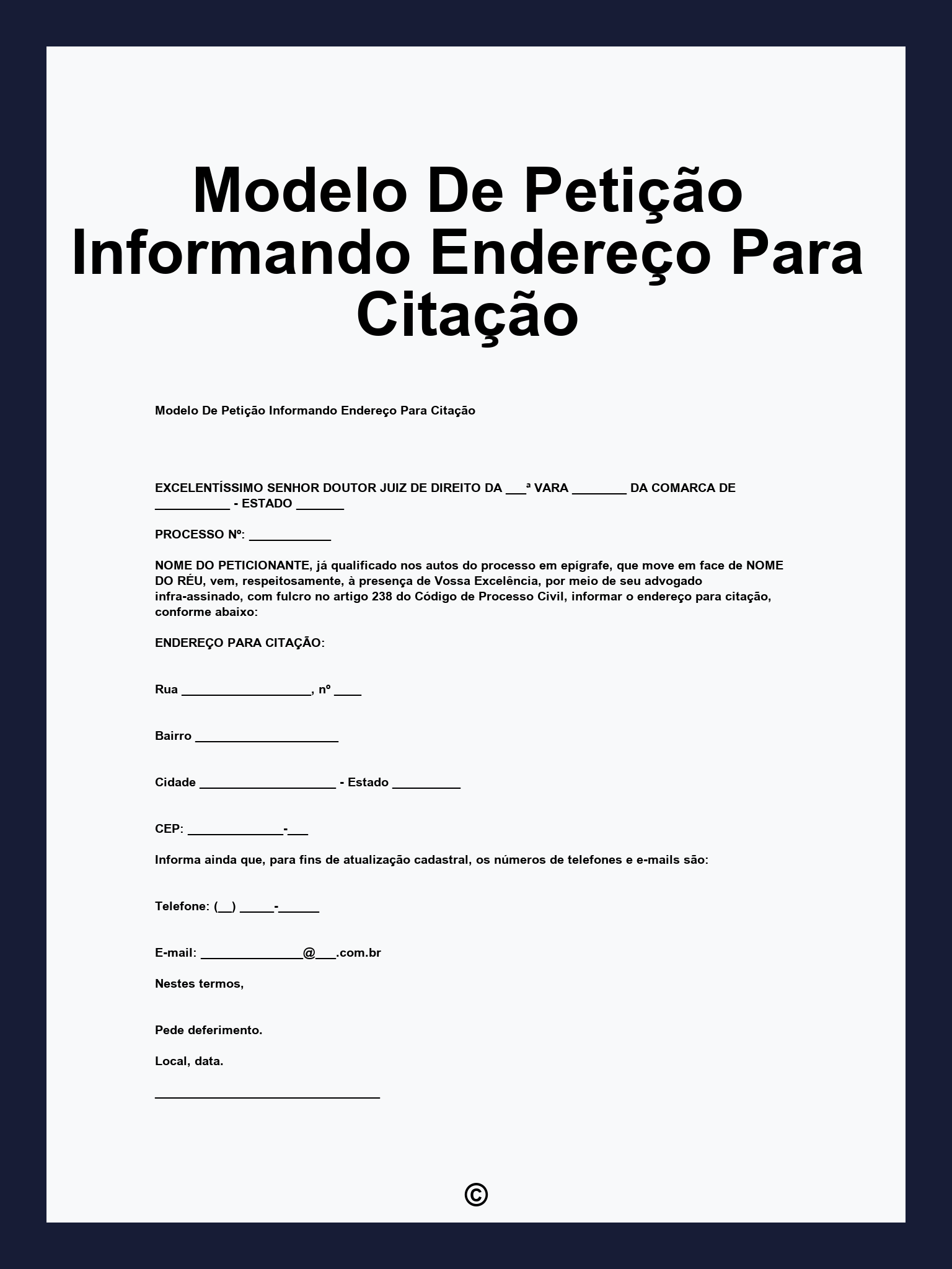 Modelo De Petição Informando Endereço Para Citação