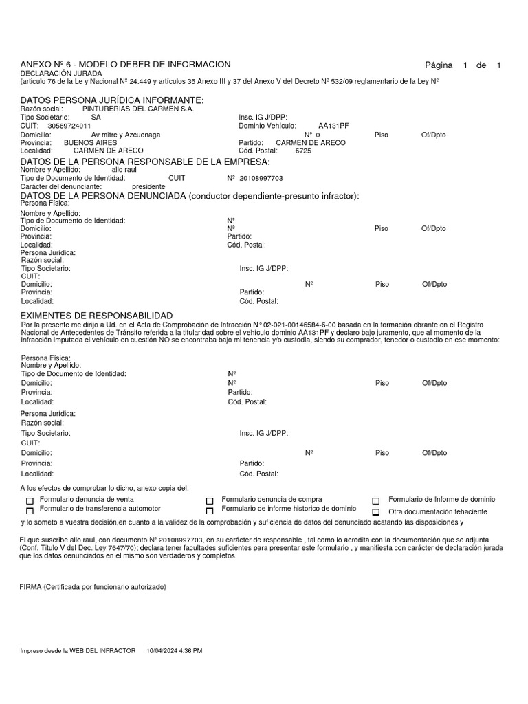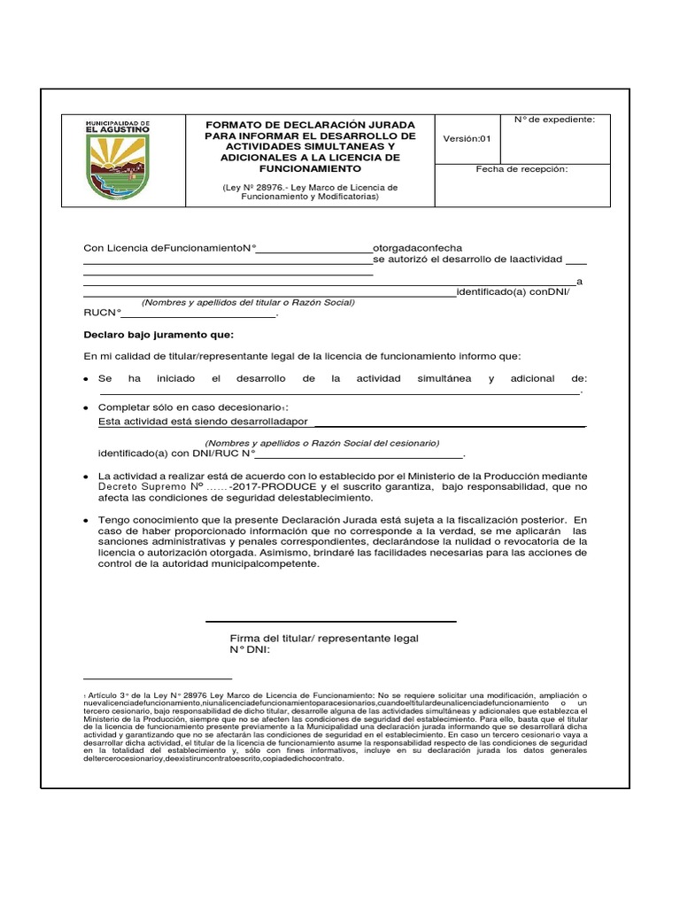 Formato de Declaracion Jurada para Informar El Desarrollo de ...