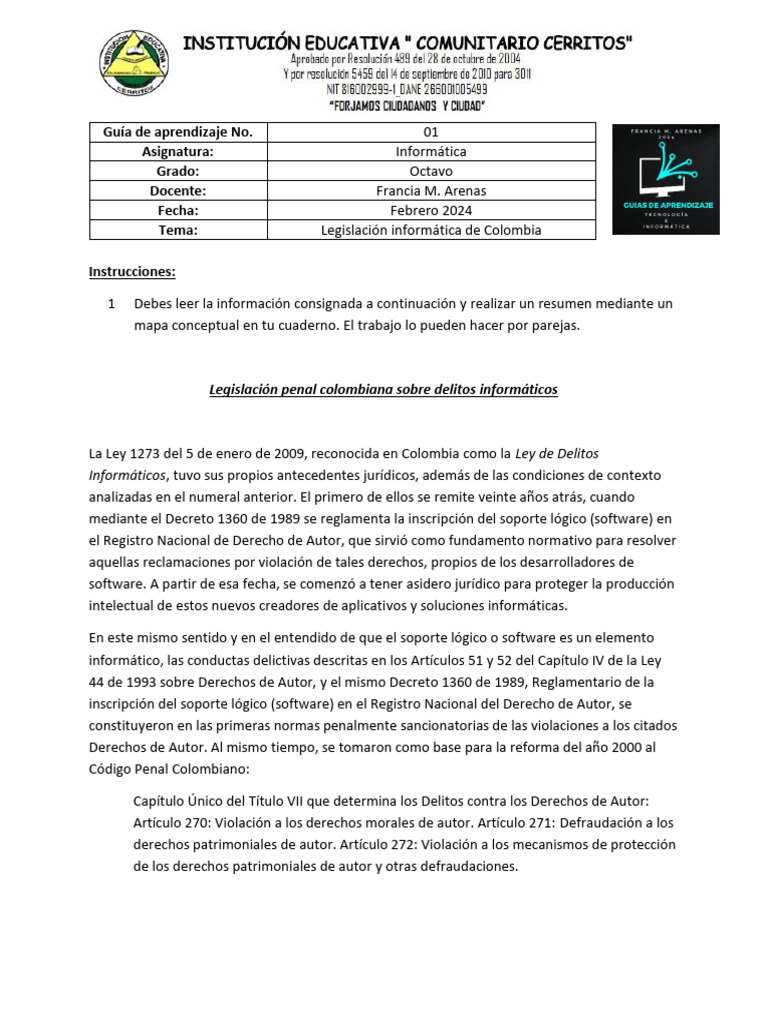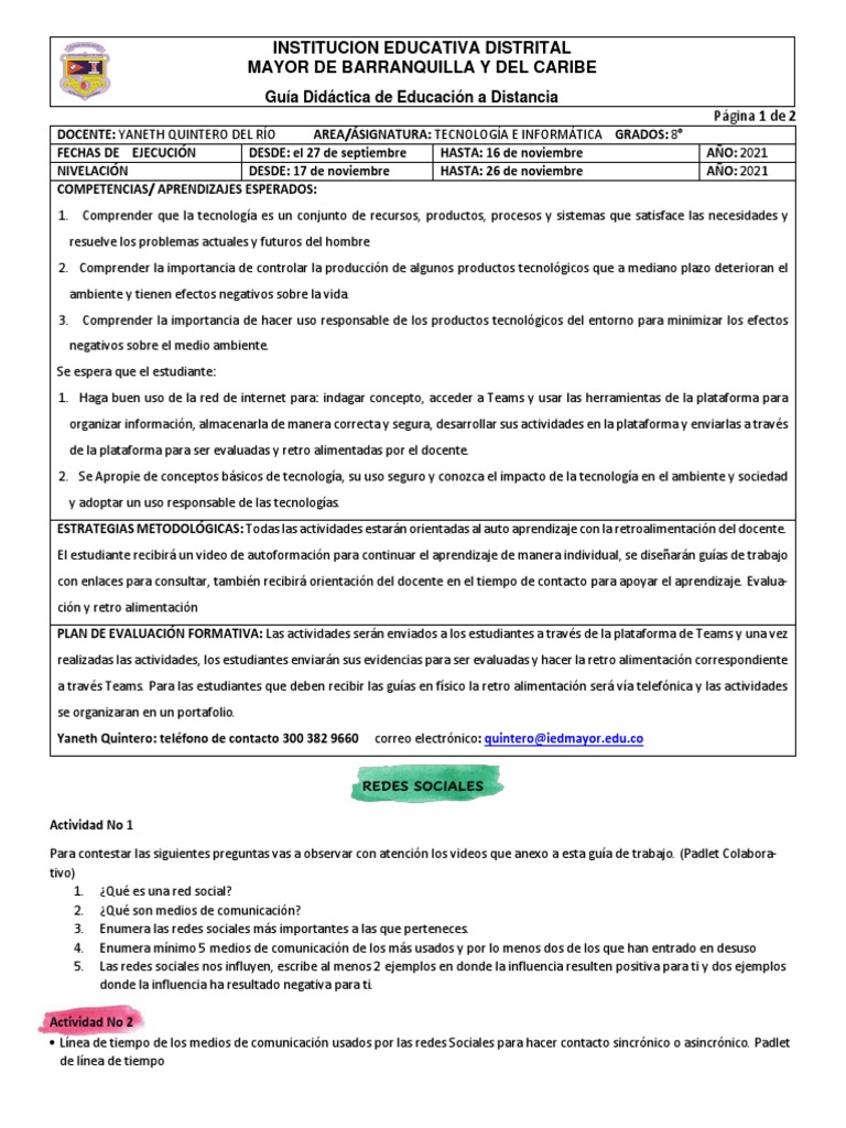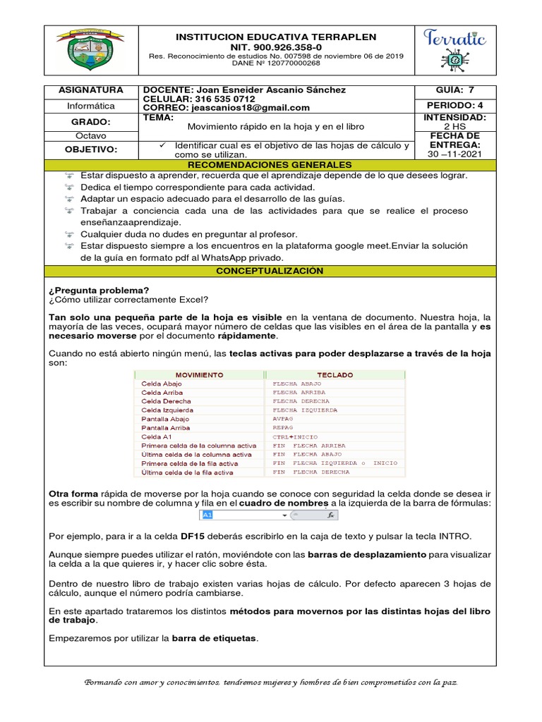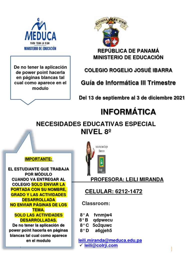 Informatica - 8° - Guia - 4P - 2021 | PDF | Maestros | Aprendizaje