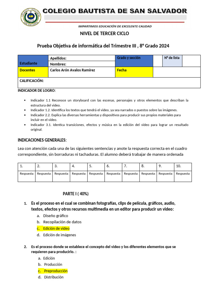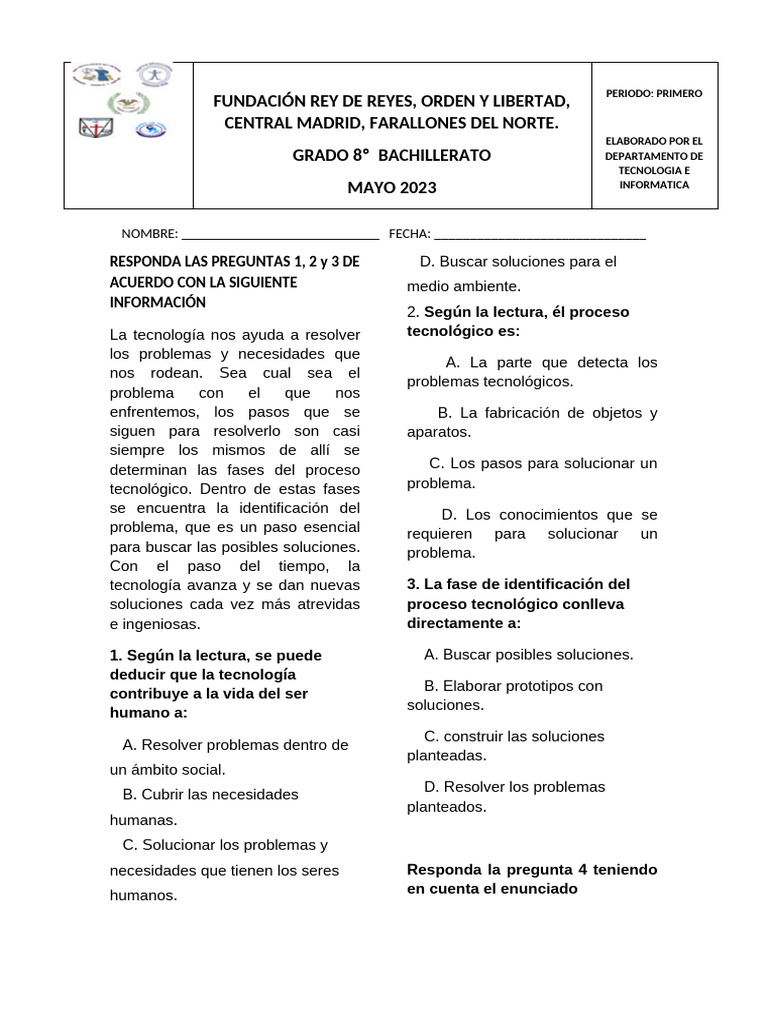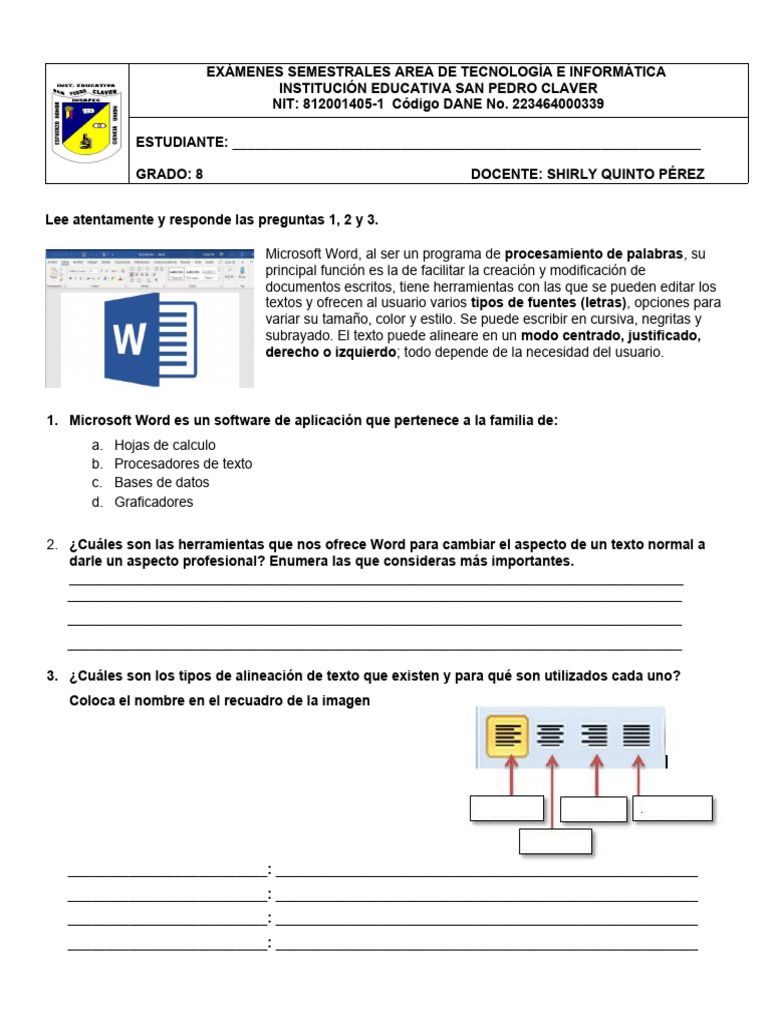 Exámenes de Tercer Periodo Area de Tecnología e Informática 8 ...