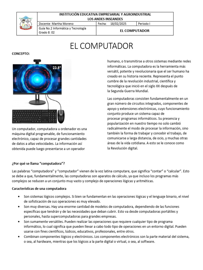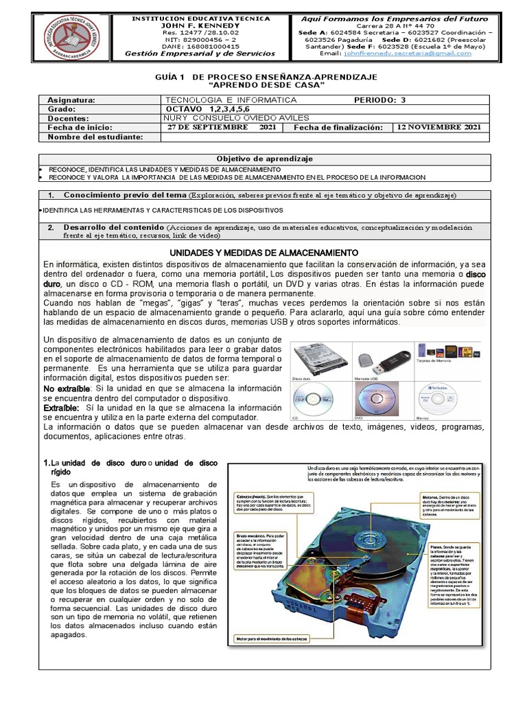 Guía 2 de Informática 8 Per1 | PDF | Hardware de la computadora | Disco ...