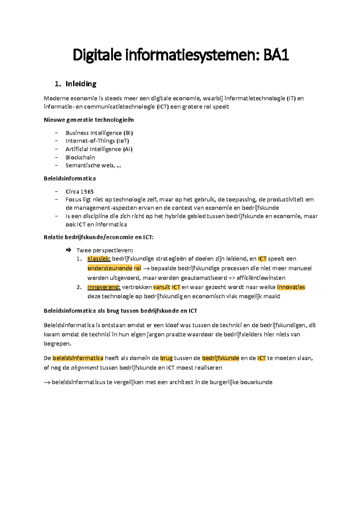 Informatiesystemen samenvatting - Digitale informatiesystemen Inleiding ...