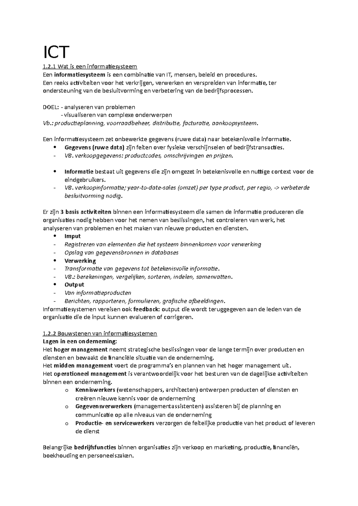 Informatiesystemen H1 tm H4, H6, H8 & H9 - ICT 1.2 Wat is een ...