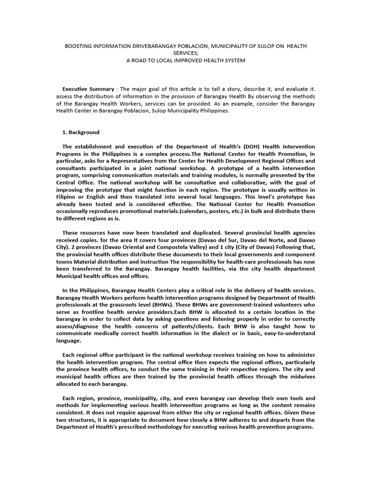 Boosting Information Drive On Barangay Poblacion | PDF | Communication ...