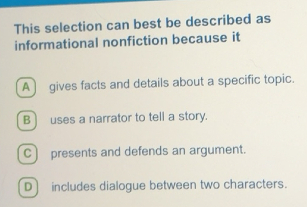 Solved: This selection can best be described as informational ...