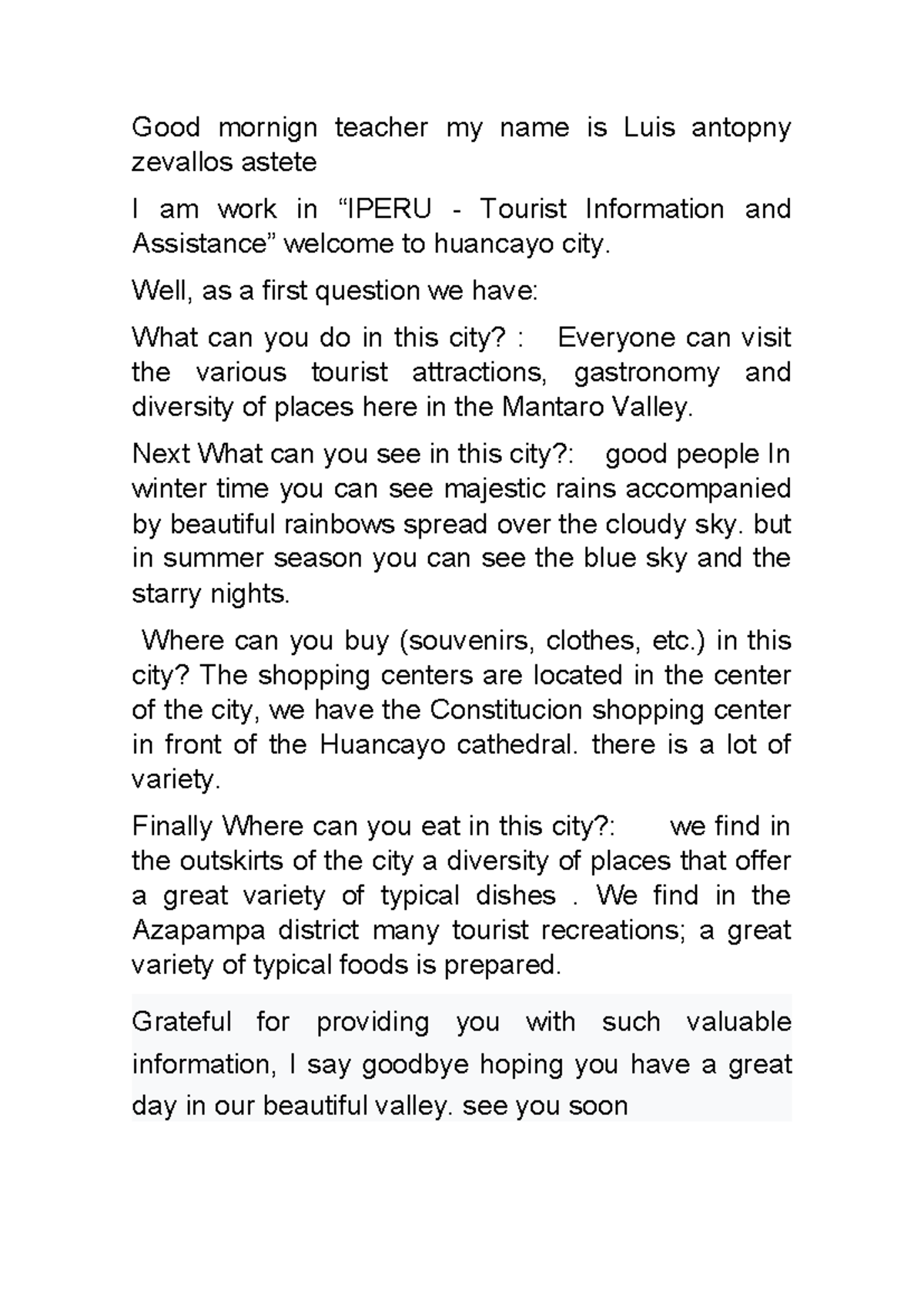 S18 - Tourist Information Guide to Huancayo City - Studocu
