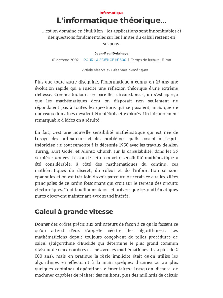 Linformatique Théorique... - Pour La Science | PDF | Théorie de la ...