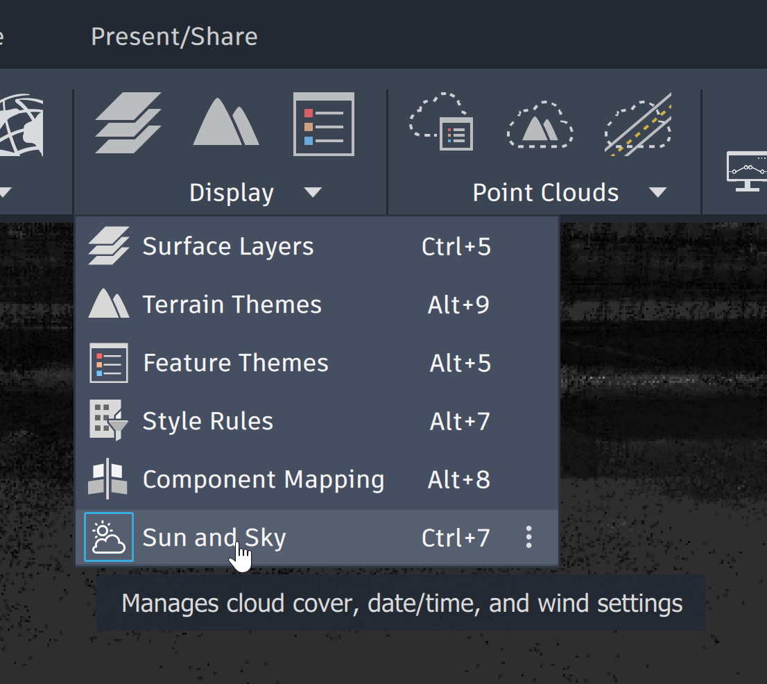 How to change time and date to simulate shadows in InfraWorks