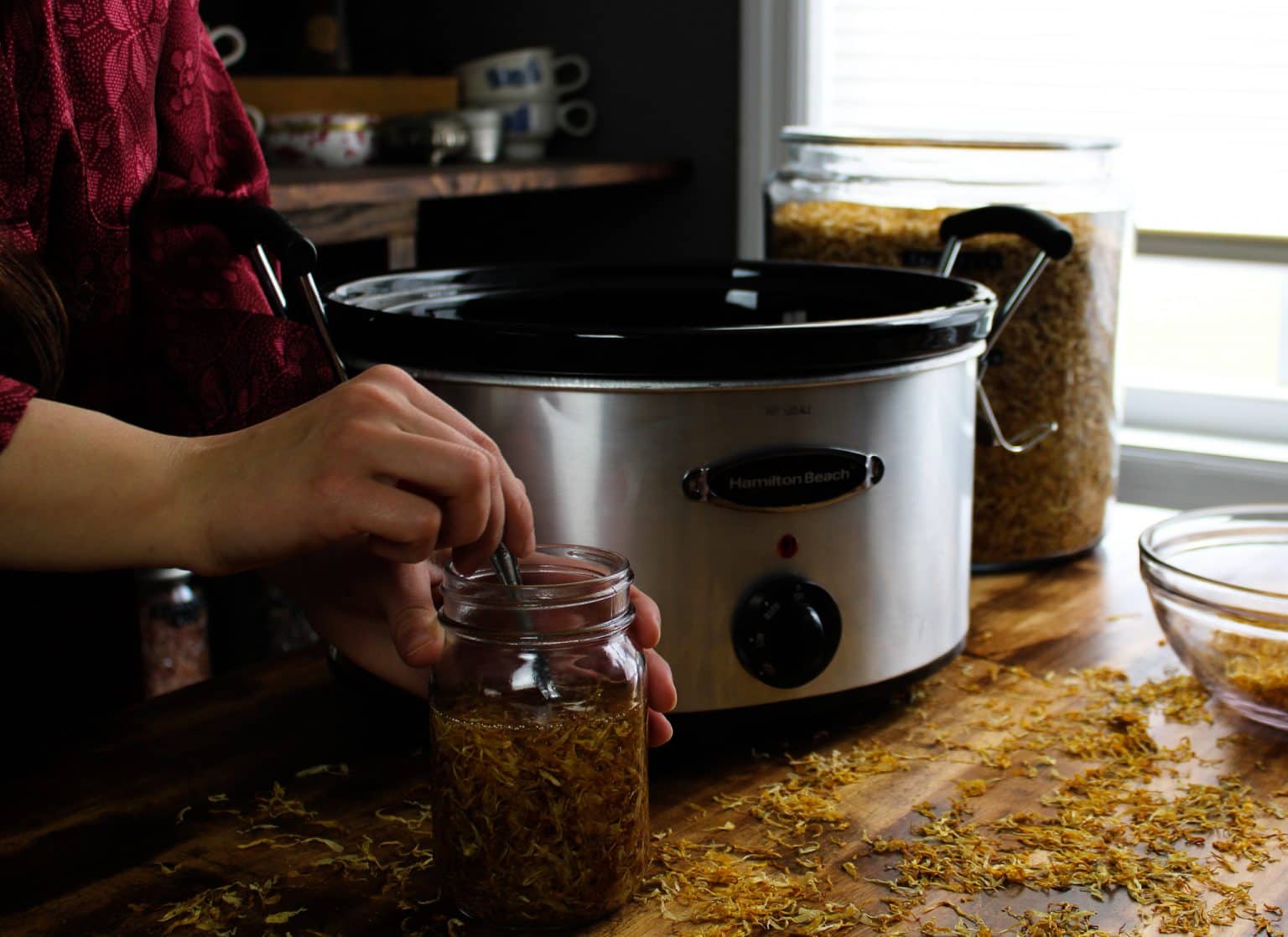 How to Infuse Herbs in Oil | Crockpot Method - Tulips and Twill