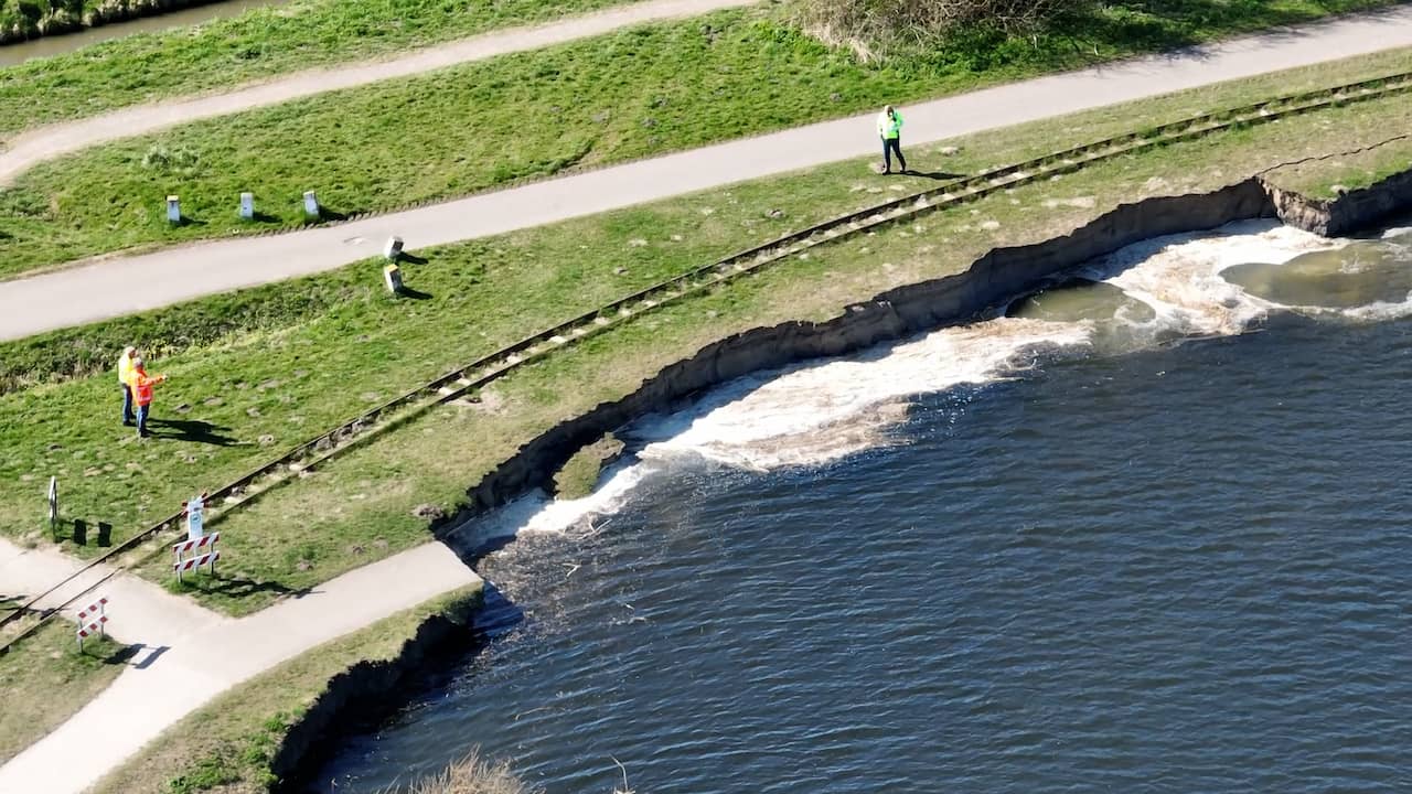 Luchtbeelden tonen ingestort deel van kade Valkenburgse Meer | NU.nl