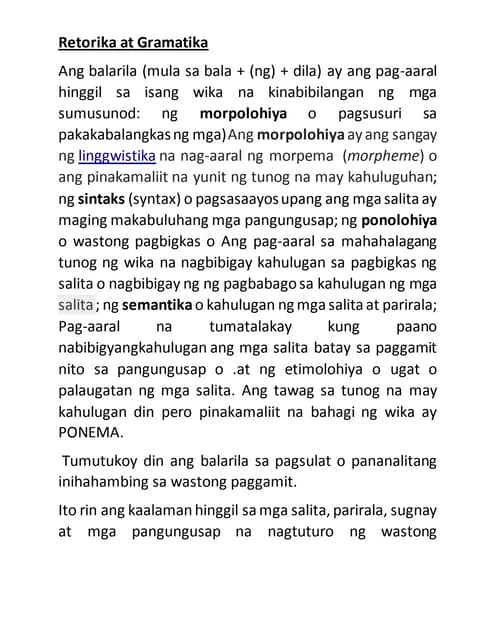 Grade ten notes - FILI Pagpapalawak ng Pangungusap Inglitik bilang ...