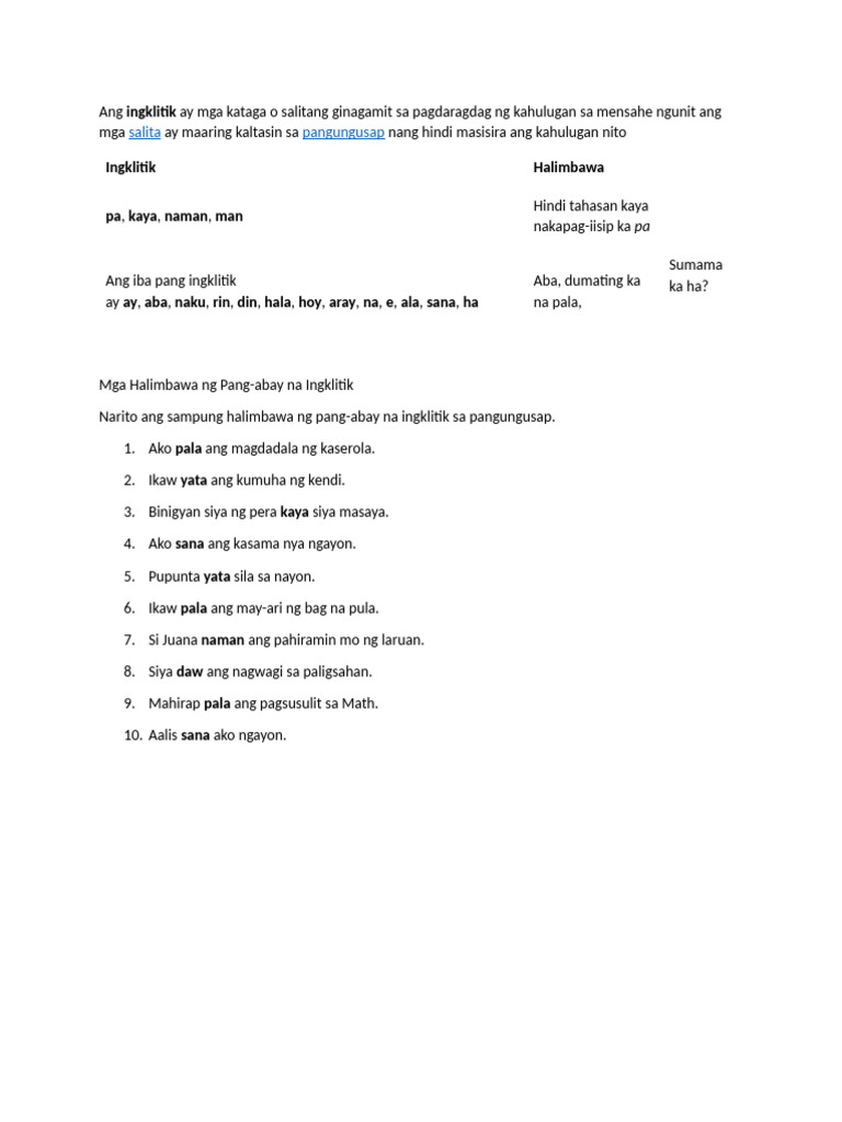 Ingklitik: Ano Ang Inglitik At Ang Mga Halimbawa Nito