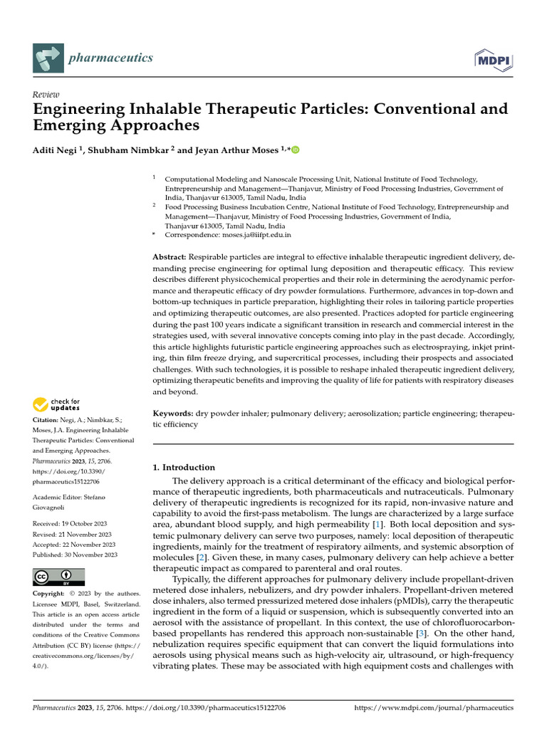 Engineering Inhalable Therapeutic Particles - Conventional and Emerging ...