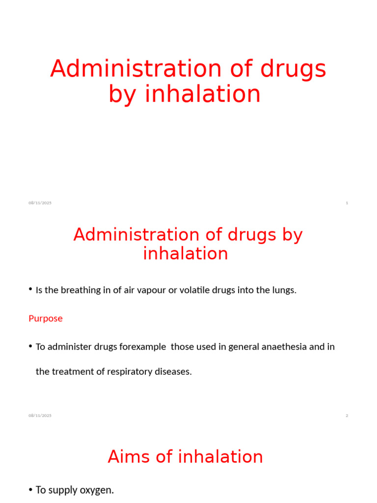 Inhalation Drug Administration Guide | PDF | Breathing | Medical ...