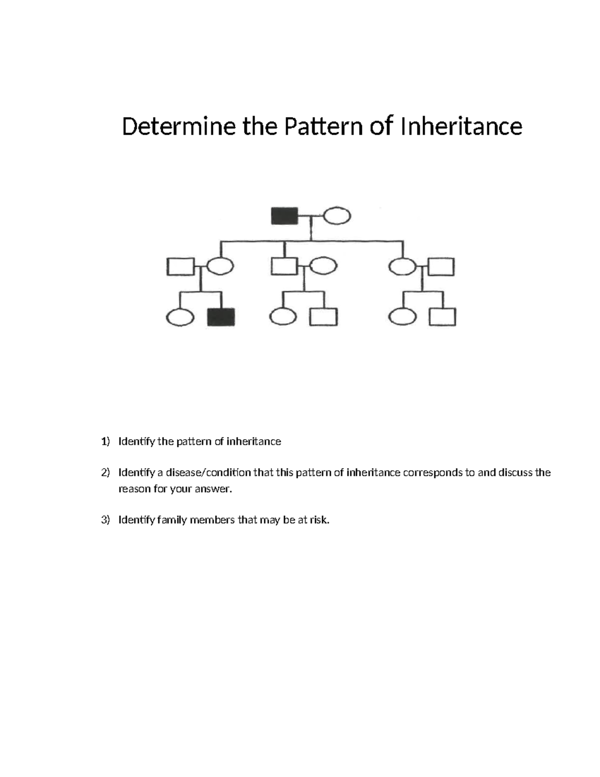 Patterns of Inheritance -Pedigree - In class Acitivity - 1) Identify ...