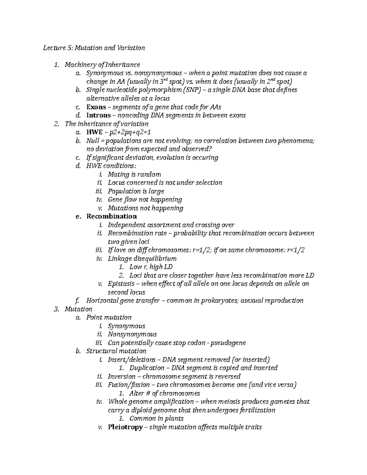 Lecture 5 Notes - Lecture 5: Mutation and Variation Machinery of ...