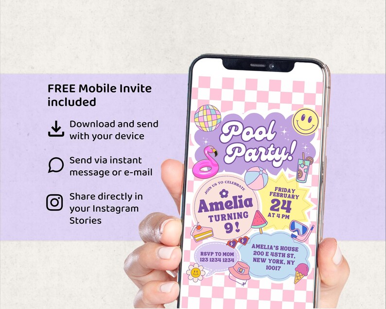 Pool Party Birthday Invitation Girl, Pool Birthday Party Invite ...