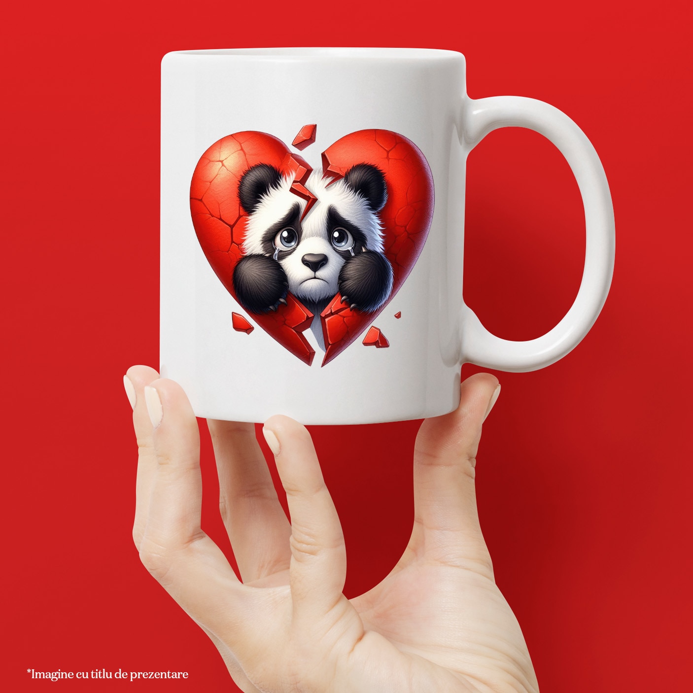 Cana cu un ursulet Panda trist, ilustratie, inima rupta, dezamagire ...