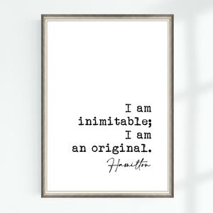 I Am Inimitable Print: Hamilton Lyrics Wall Art (digital Download) - Etsy