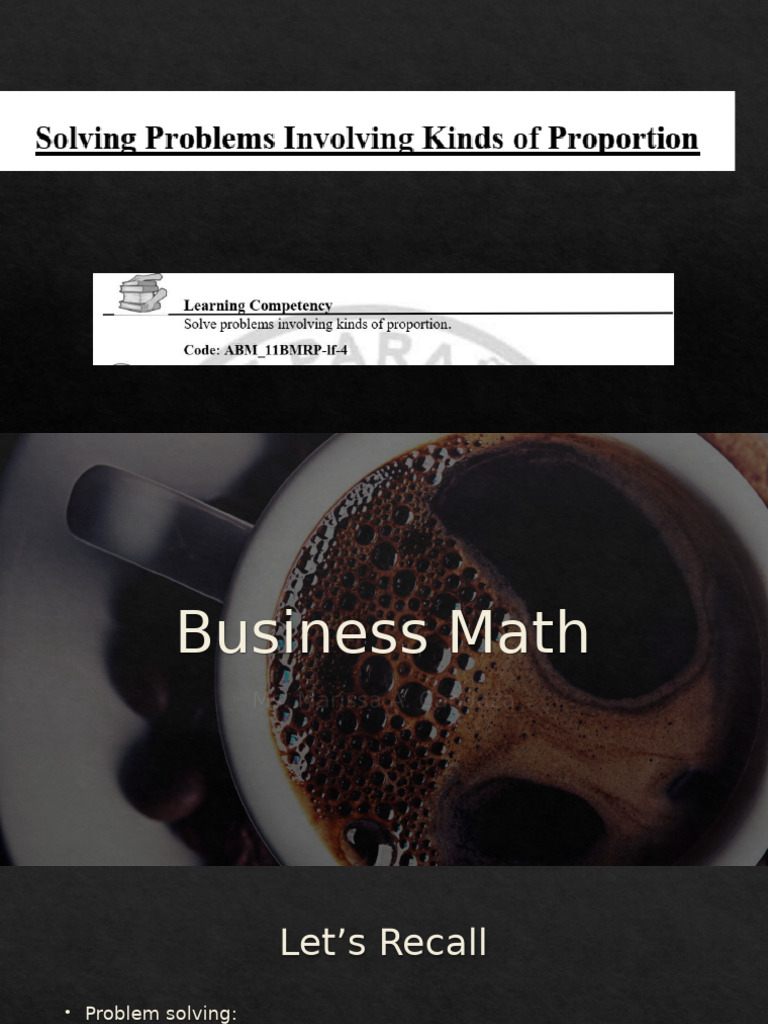 Solve problems involving ratio and proportion | PPTX