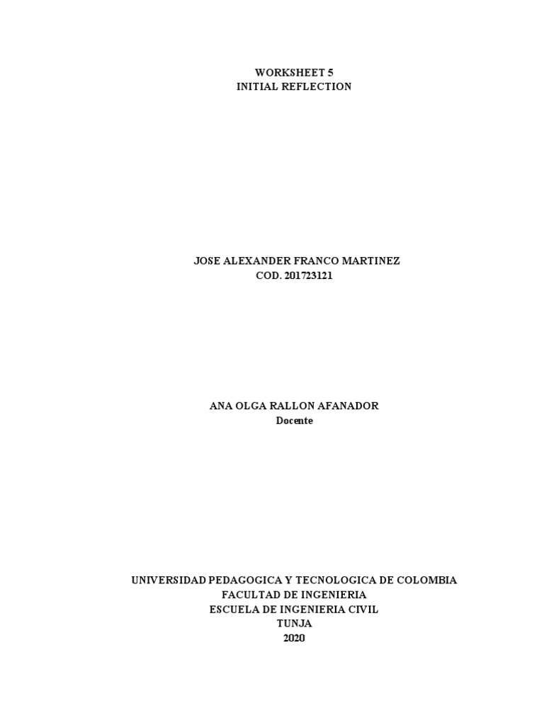 Worksheet 5 Initial Reflection | Download Free PDF | Test Of English As ...