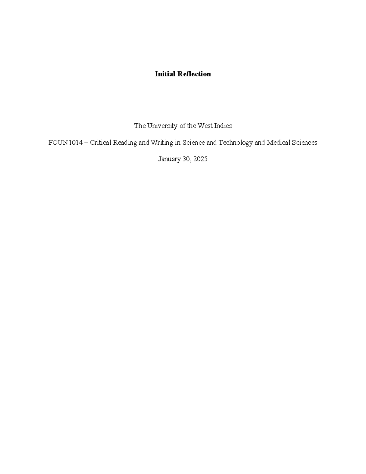 FOUN1014 Initial Reflection on Critical Reading & Writing in Science ...
