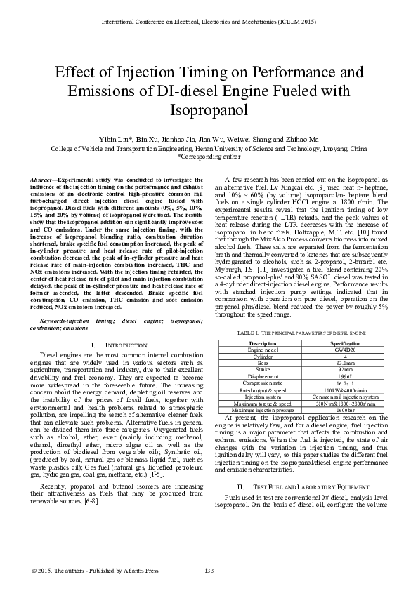 (PDF) Effect of Injection Timing on Performance and Emissions of DI ...