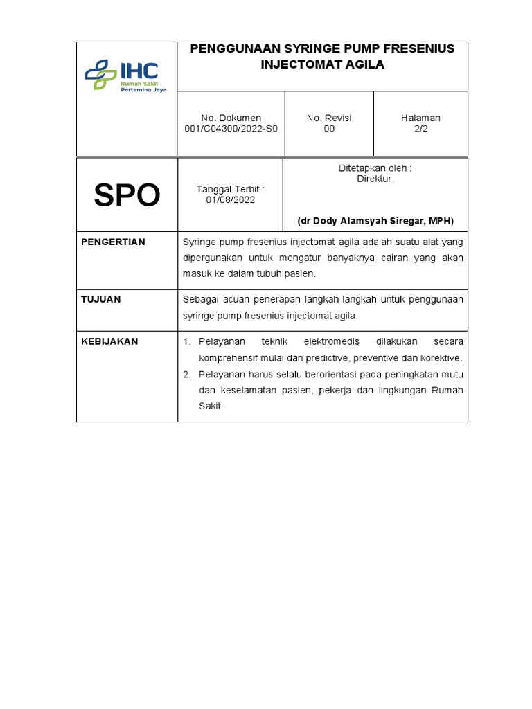 Penggunaan Syringe Pump Fresenius Injectomat Agila | PDF