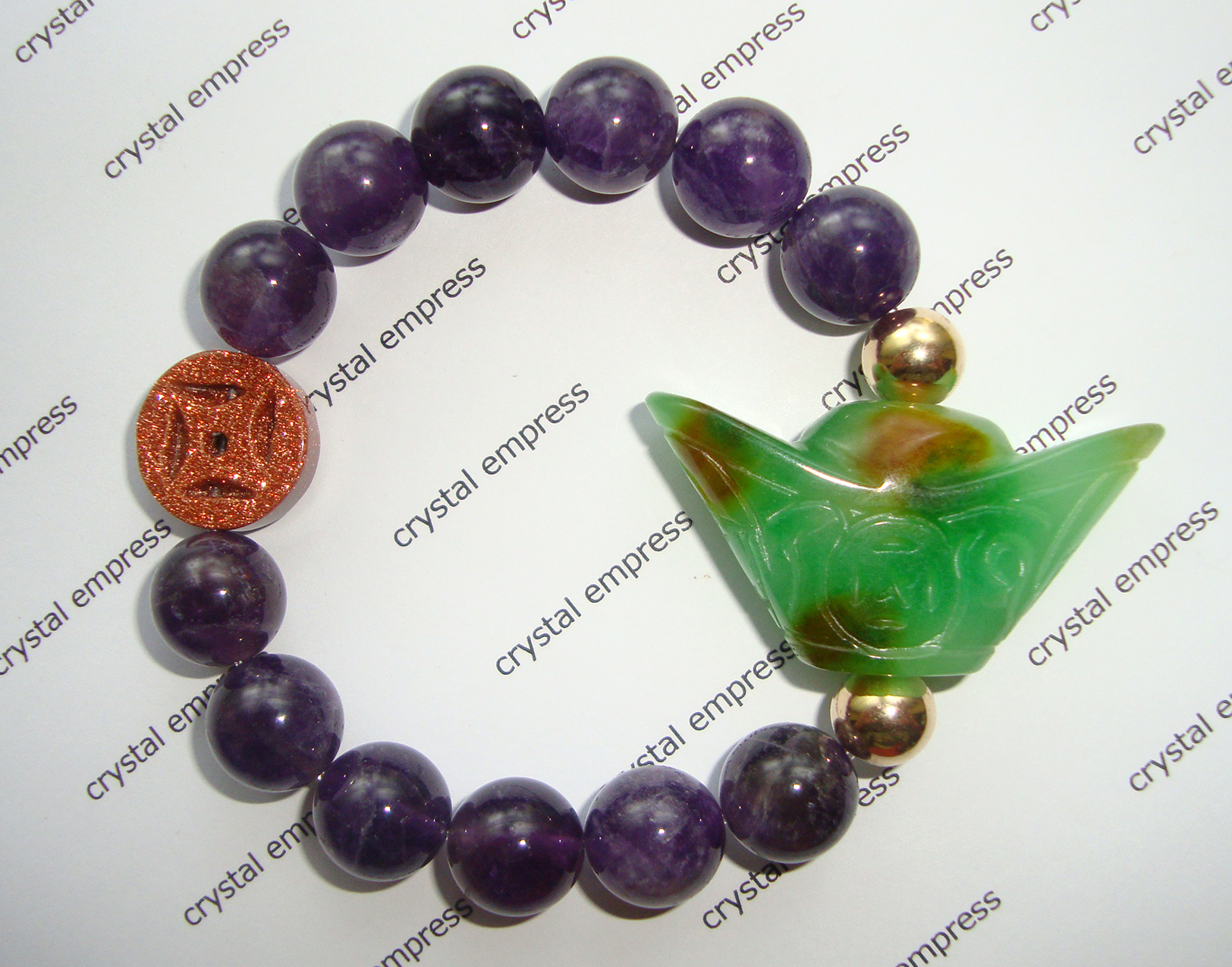 Green Jade Ingot & I-Ching Coin with 12mm Amethyst Bracelet - Crystal ...