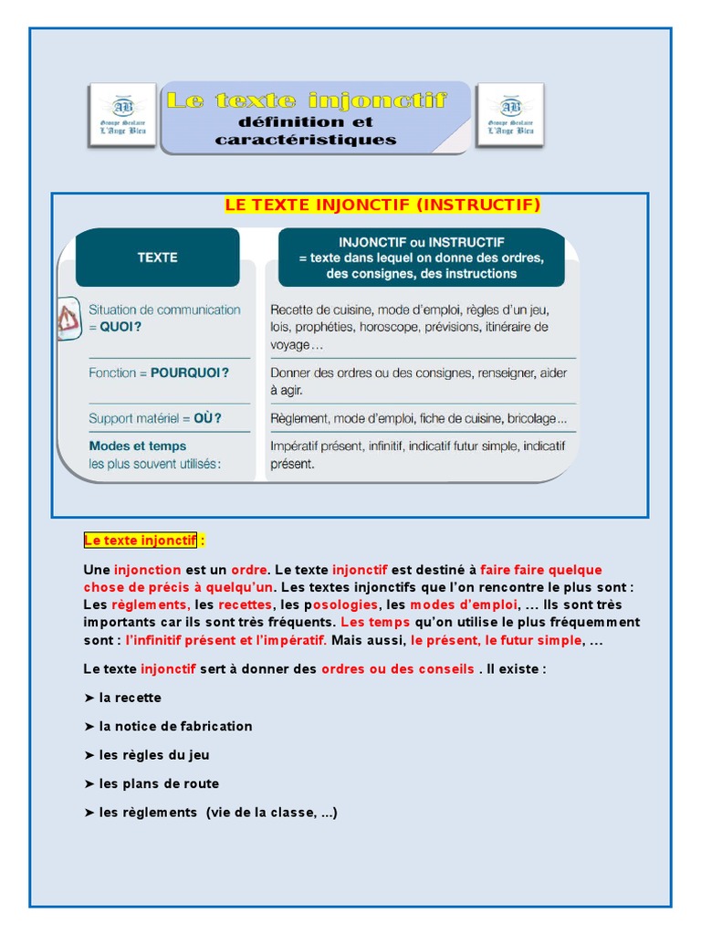 Le texte injonctif : Identification, Caractéristiques et Exemples - Studocu
