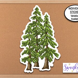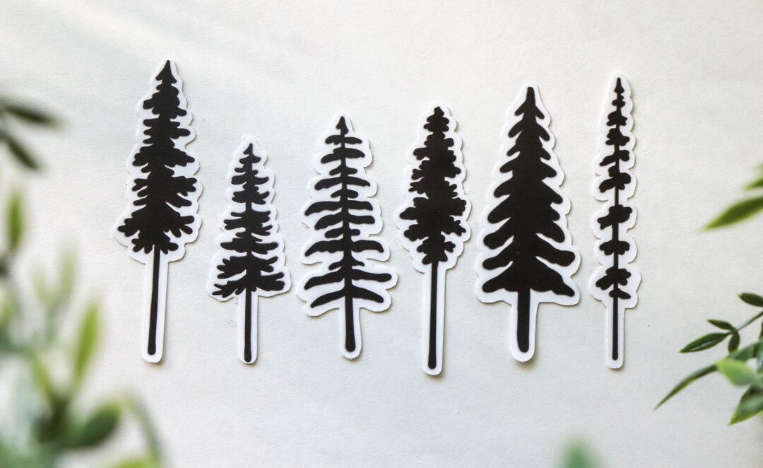 Three Tree Sticker Pine Tree Sticker Nature Sticker Unique Sticker Hand ...
