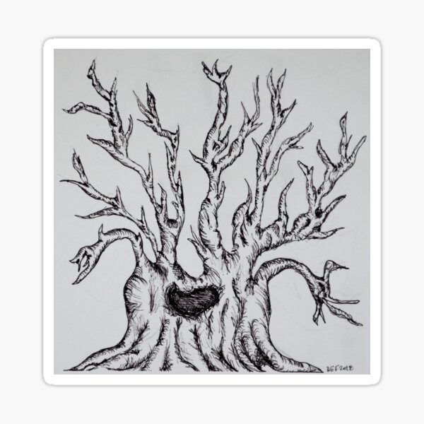 "Pen and Ink Tree" Sticker for Sale by spottedoak | Redbubble