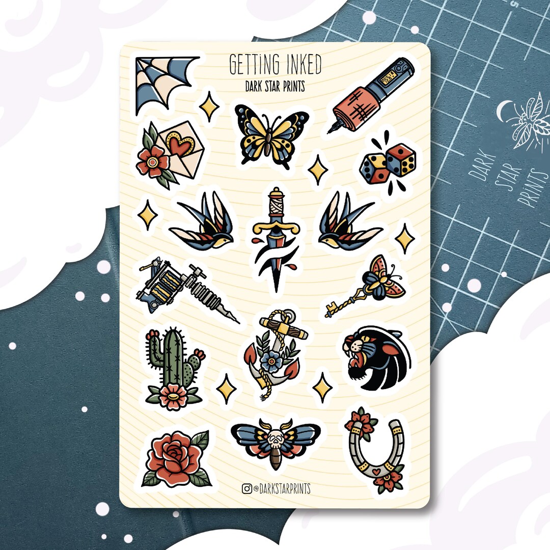 Getting Inked Sticker Sheet - Traditional Tattoo Stickers for Planners ...