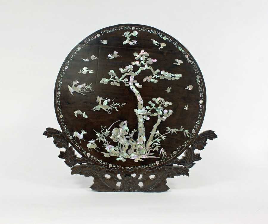 Lot 212 - A Chinese hardwood shell inlaid screen with