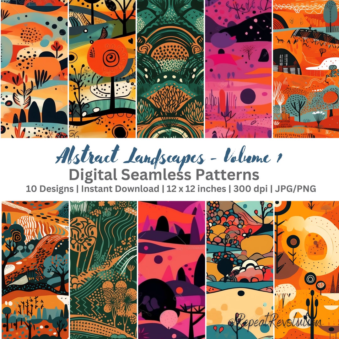 10 Repeatable Abstract Landscape Patterns - Seamless Digital Download ...