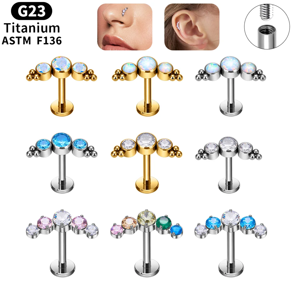 ASTM F136 Titanium Internal Thread Mushroom Shape CZ Inlay Nose ...