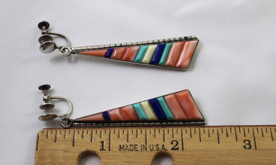 Native American Sterling & Multiple Gemstone Inlay Triangular Screw On ...