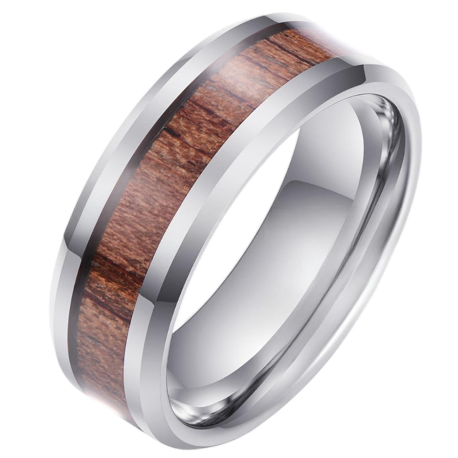 8 mm Wide Tungsten Steel Wood Inlay Vintage Men's Ring Jewelry ...