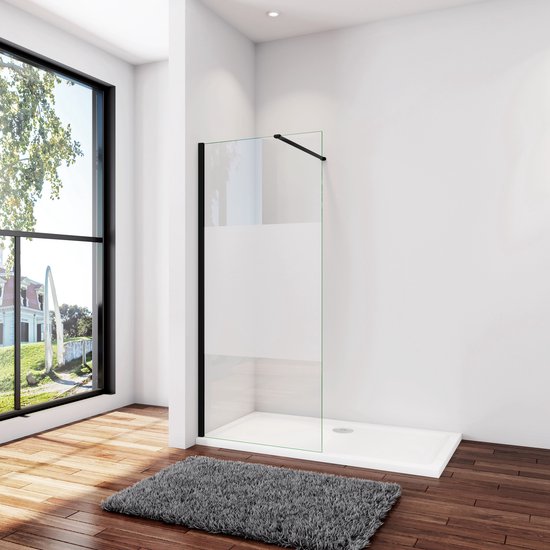 Diamond Inloopdouche | 120 cm Zwart metaal Helder met matte strook ...