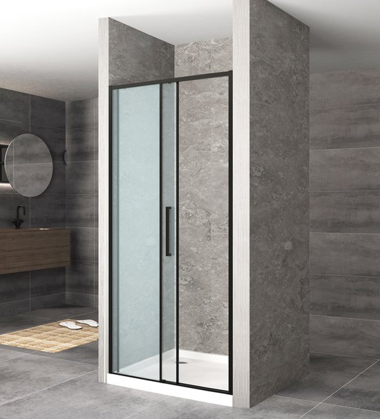 Inloopdouchescherm - 120 x 200 cm - Mat zwart - Gehard glas - AMBERI ...