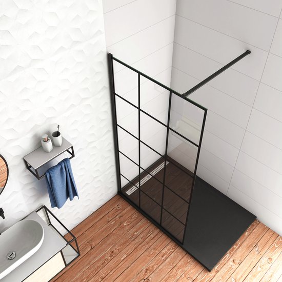 Inloopdouche 8mm Helder Glas met Mat Zwart Raster - 120 x 200 cm - TCS ...